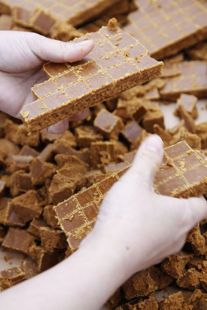 趁黑糖還沒冷掉變硬的時候趕快切割